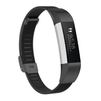 Για Fitbit Alta / Alta HR / ACE ρολόι, μεταλλικό λουράκι αντικατάστασης με πλέγμα κουμπιού, Μέγεθος: L (Μαύρο)