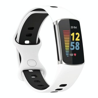 For Fitbit Charge 5 Two-color Silicone Watch Band(White Black)