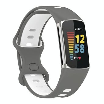 For Fitbit Charge 5 Two-color Silicone Watch Band(Grey White)