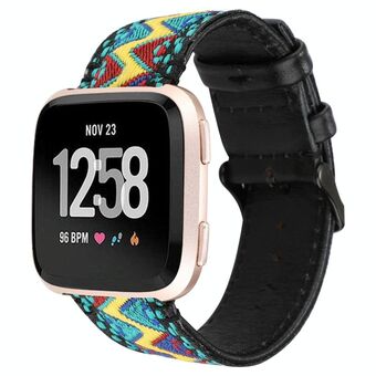 For Fitbit Versa Ethnic Style Genuine Leather Watch Band(Bohemia)