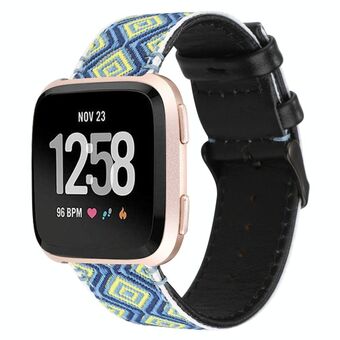 For Fitbit Versa Ethnic Style Genuine Leather Watch Band(Fresh)