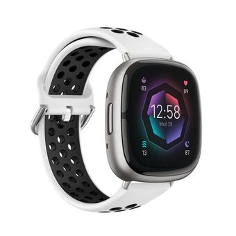 Για Fitbit Sense 2 Δύο-χρώμα διάτρητο αναπνεύσιμο λουράκι σιλικόνης ρολόι (Λευκό + Μαύρο)