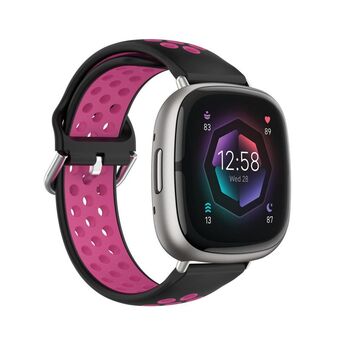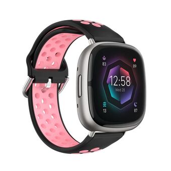 Για Fitbit Sense 2 Δύο-χρώμα διάτρητο αναπνεύσιμο λουράκι σιλικόνης ρολόι (μαύρο + ροζ)