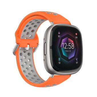 Για Fitbit Sense 2 Δύο-χρώμα διάτρητο αναπνεύσιμο λουράκι σιλικόνης ρολόι (πορτοκαλί + γκρι)