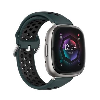 Για Fitbit Sense Δύο-χρώμα διάτρητο αναπνεύσιμο λουράκι σιλικόνης ρολόι (Olive Green + Μαύρο)