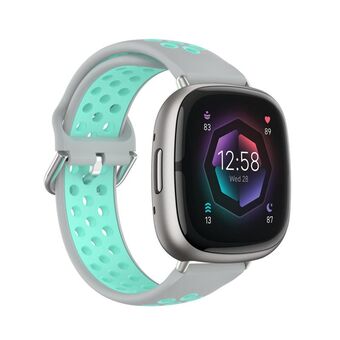 Για Fitbit Sense 2 Δύο-χρώμα διάτρητο αναπνεύσιμο λουράκι σιλικόνης ρολόι (γκρι + Teal)