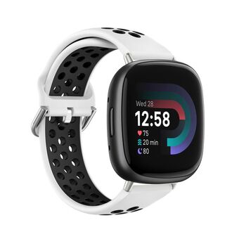 Για Fitbit Versa 4 Δύο-χρώμα διάτρητο αναπνεύσιμο λουράκι σιλικόνης ρολόι (Λευκό + Μαύρο)