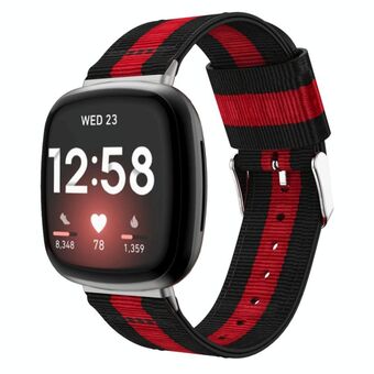 Για Fitbit Versa 4 / Sense 2 Universal Stripe Nylon Watch Band (μαύρο κόκκινο μαύρο)