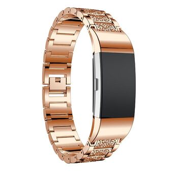 Μπρασελέ για Fitbit Charge 2 από ανοξείδωτο ατσάλι με διαμάντια (Χρυσό ροζ)