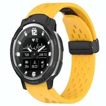 For Garmin Instinct Crossover Solar Hole Folding Buckle 22mm Silicone Watch Band(Yellow)