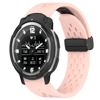 For Garmin Instinct Crossover Hole Folding Buckle 22mm Silicone Watch Band(Pink)