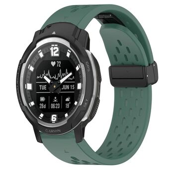 For Garmin Instinct Crossover Hole Folding Buckle 22mm Silicone Watch Band(Dark Green)