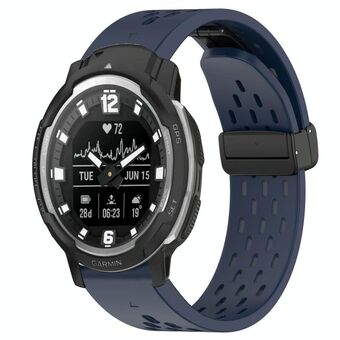 For Garmin Instinct Crossover Hole Folding Buckle 22mm Silicone Watch Band(Midnight Blue)