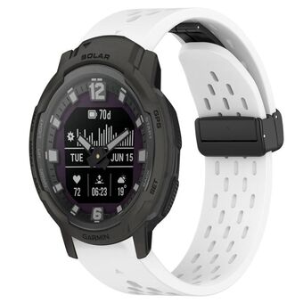 For Garmin Instinct Crossover Solar Hole Folding Buckle 22mm Silicone Watch Band(White)