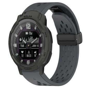 For Garmin Instinct Crossover Solar Hole Folding Buckle 22mm Silicone Watch Band(Dark Gray)