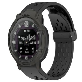 For Garmin Instinct Crossover Solar Hole Folding Buckle 22mm Silicone Watch Band(Black)