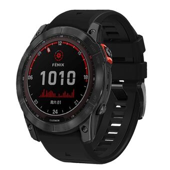 For Garmin Fenix 7X 26mm Solid Color Steel Buckle Silicone Quick Release Watch Band(Black)
