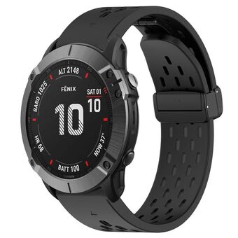 For Garmin Fenix 6X Pro Hole Folding Buckle 26mm Silicone Watch Band(Black)