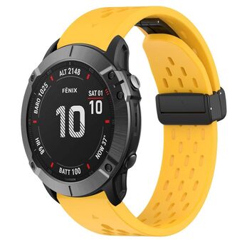 For Garmin Fenix 6X Pro Hole Folding Buckle 26mm Silicone Watch Band(Yellow)