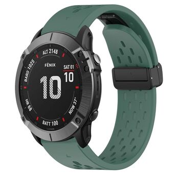 For Garmin Fenix 6X Pro Hole Folding Buckle 26mm Silicone Watch Band(Dark Green)