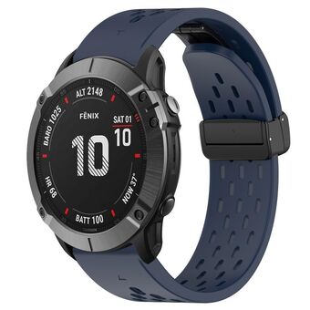 For Garmin Fenix 6X Pro Hole Folding Buckle 26mm Silicone Watch Band(Midnight Blue)