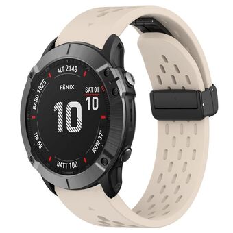For Garmin Fenix 6X Pro Hole Folding Buckle 26mm Silicone Watch Band(Starlight Color)