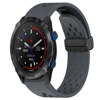 For Garmin Descent MK 2i Hole Folding Buckle 26mm Silicone Watch Band(Dark Gray)