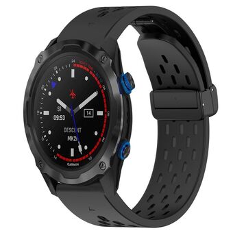 For Garmin Descent MK 2i Hole Folding Buckle 26mm Silicone Watch Band(Black)