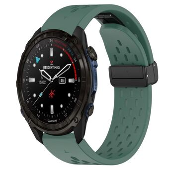 For Garmin Descent Mk3i 51mm Hole Folding Buckle 26mm Silicone Watch Band(Dark Green)