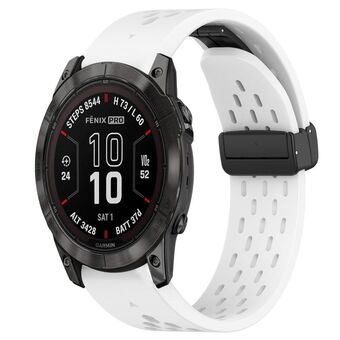 For Garmin Fenix 7X Pro 51mm Hole Folding Buckle 26mm Silicone Watch Band(White)