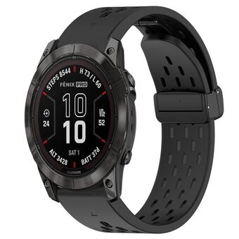 For Garmin Fenix 7X Pro 51mm Hole Folding Buckle 26mm Silicone Watch Band(Black)