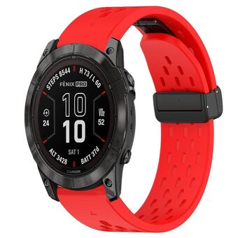 For Garmin Fenix 7X Pro 51mm Hole Folding Buckle 26mm Silicone Watch Band(Red)