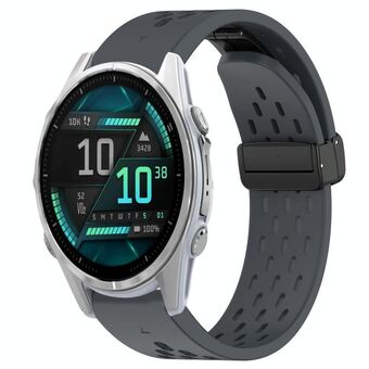 For Garmin Fenix 8 AMOLED 43mm Hole Folding Buckle 20mm Silicone Watch Band(Dark Gray)