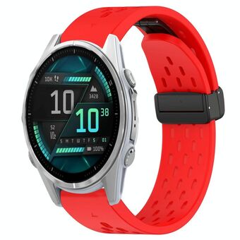 For Garmin Fenix 8 AMOLED 43mm Hole Folding Buckle 20mm Silicone Watch Band(Red)