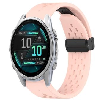 For Garmin Fenix 8 AMOLED 43mm Hole Folding Buckle 20mm Silicone Watch Band(Pink)