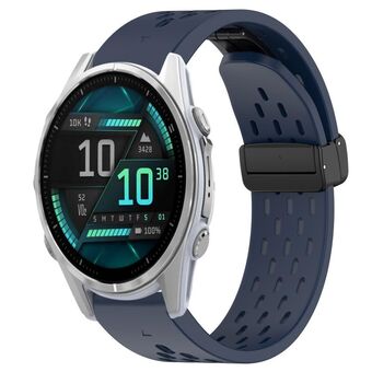 For Garmin Fenix 8 AMOLED 43mm Hole Folding Buckle 20mm Silicone Watch Band(Midnight Blue)