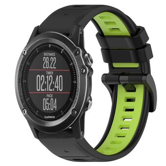 For Garmin Fenix 3 Sports Two-Color 26mm Silicone Watch Band(Black+Lime Green)