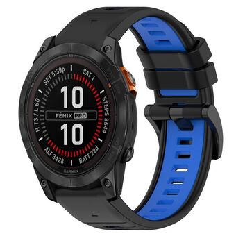 For Garmin Fenix 7X Sports Two-Color 26mm Silicone Watch Band(Black+Blue)