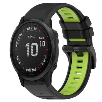 For Garmin Fenix 6S Sports Two-Color 20mm Silicone Watch Band(Black+Lime Green)