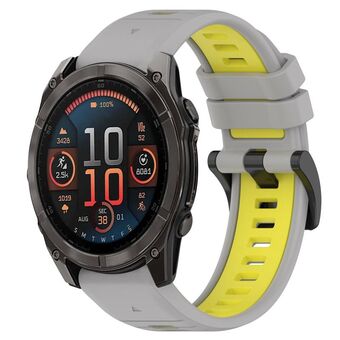 For Garmin Fenix 8 AMOLED 47mm Sports Two-Color 22mm Silicone Watch Band(Grey+Yellow)