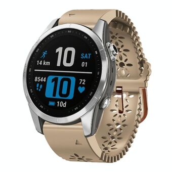 For Garmin Fenix 7S Pro 42mm Lady Lace Punch Silicone Watch Band(Khaki)