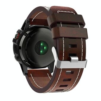 For Garmin Fenix 3 26mm Sewing Leather Steel Buckle Watch Band(Red Brown)