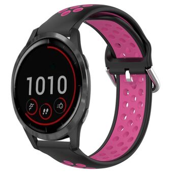 For Garmin Vivoactive4 22mm Perforated Breathable Sports Silicone Watch Band(Black+Rose Red)