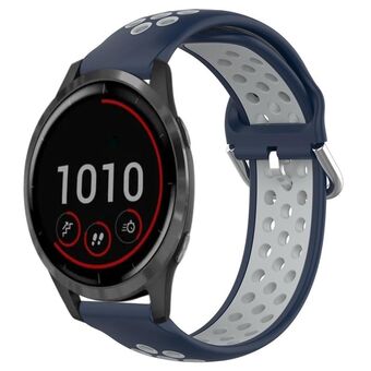 For Garmin Vivoactive4 22mm Perforated Breathable Sports Silicone Watch Band(Midnight Blue + Gray)