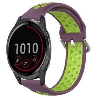 For Garmin Vivoactive4 22mm Perforated Breathable Sports Silicone Watch Band(Purple+Lime)