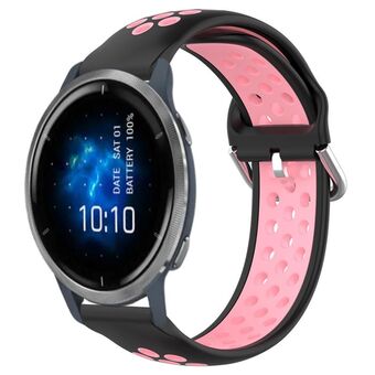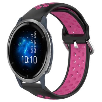 For Garmin Venu 2 22mm Perforated Breathable Sports Silicone Watch Band(Black+Pink)