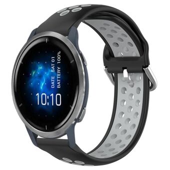 For Garmin Venu 2 22mm Perforated Breathable Sports Silicone Watch Band(Black+ Grey)