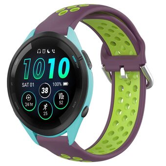 For Garmin Forerunner 265 22mm Perforated Breathable Sports Silicone Watch Band(Purple+Lime)