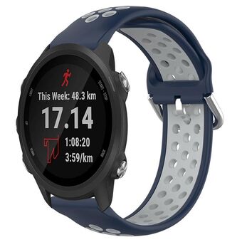 For Garmin Forerunner 245 Music 20mm Perforated Breathable Sports Silicone Watch Band(Midnight Blue + Gray)