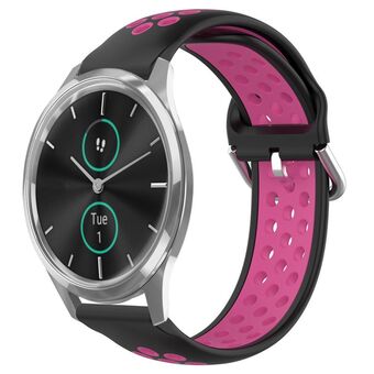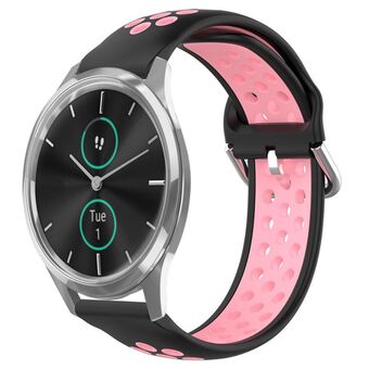For Garmin VivoMove Luxe 20mm Perforated Breathable Sports Silicone Watch Band(Black+Pink)